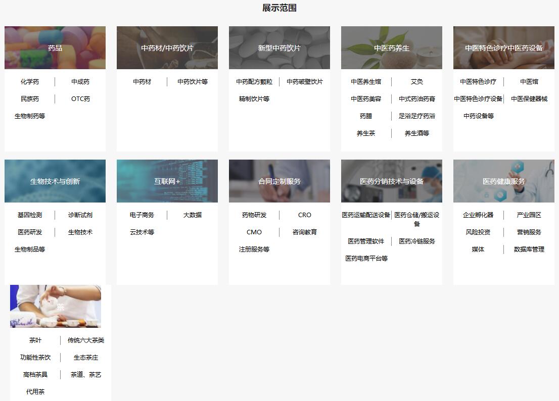 中藥飲片和中藥材展區(qū)是藥交會發(fā)展最快的展區(qū)。同步中藥產業(yè)整體利好的趨勢,蓬勃發(fā)展起來。展示內容涵蓋:中藥飲片、中藥材、新型中藥飲片(中藥配方顆粒、中藥破壁飲片、精制飲片)等