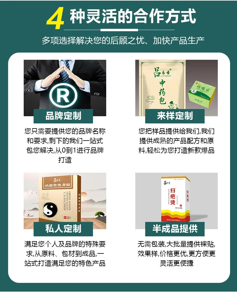 河南呂真人醫(yī)藥,主營械字號、消字號、貼膏類、婦科類、日用品類等產(chǎn)品貼牌代加工。完善的生產(chǎn)技術(shù),成熟的產(chǎn)品質(zhì)量。全國控銷、來料加工,中藥粉劑、凝膠、液體、膏藥、固體飲料、壓片糖果、袋泡茶多種文號等你使用。