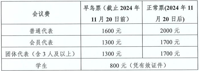 本次大會(huì)的報(bào)名現(xiàn)已啟動(dòng),會(huì)議收費(fèi)標(biāo)準(zhǔn)見下表(會(huì)議費(fèi)包含參會(huì)費(fèi)、會(huì)議資料、7-8日自助午餐費(fèi)用),使用微信掃描下方二維碼進(jìn)行報(bào)名,報(bào)名截止日期2024年11月30日,交通、住宿自理。