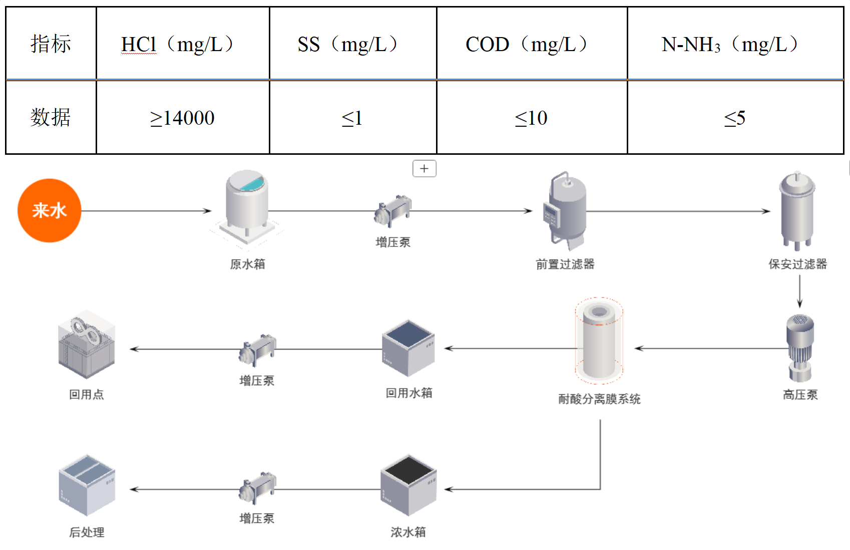 萊特萊德以耐酸分離膜元件為依托,利用特有的極限分離技術,凈化廢液中的鹽酸并脫除其中的鹽分和有機物,使酸達到回用標準,實現資源化利用,同時整體降低廢酸量,進而減少后續(xù)加堿及蒸發(fā)處理成本。